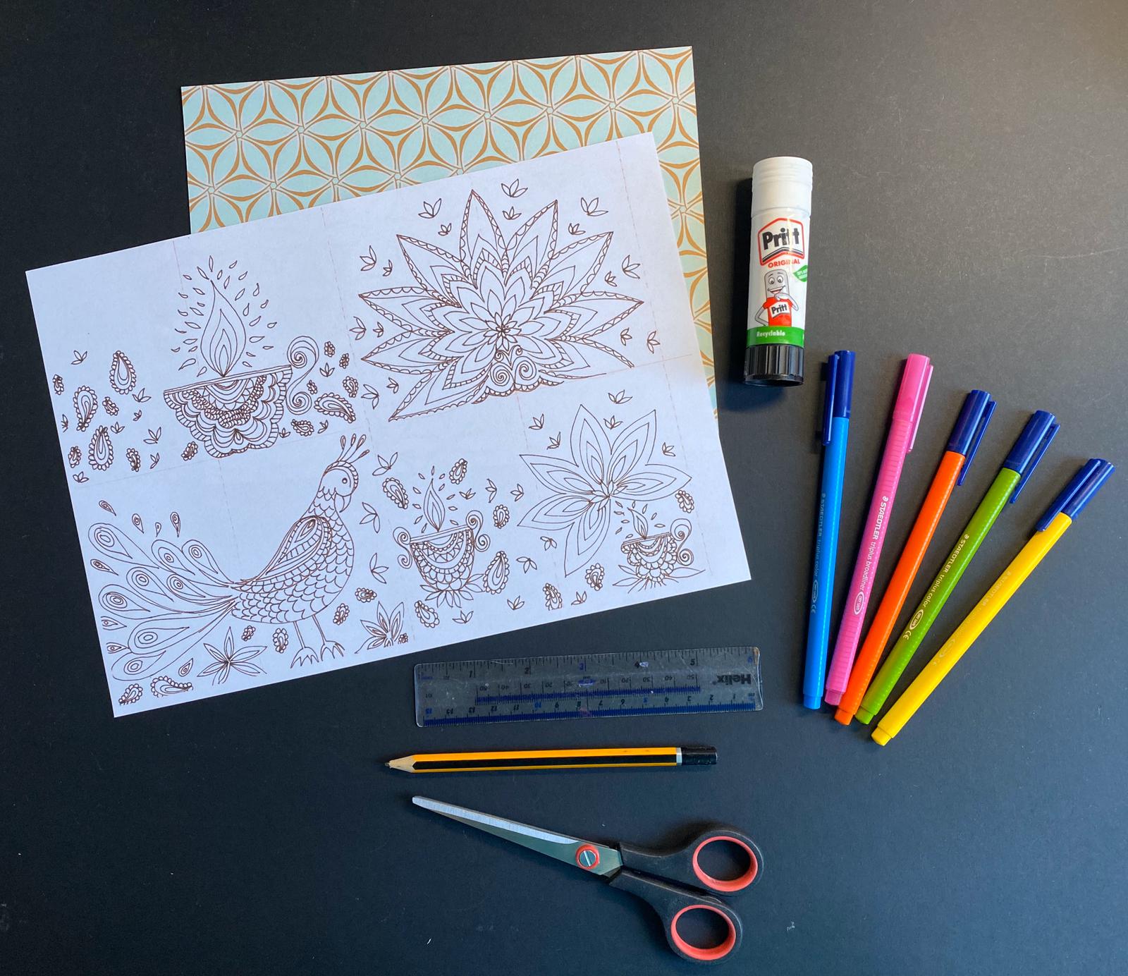 We have been working with artist Michelle Wood, who has created this beautiful Diwali concertina fold book, which you can make at home to keep, or give to your loved ones as a gift.